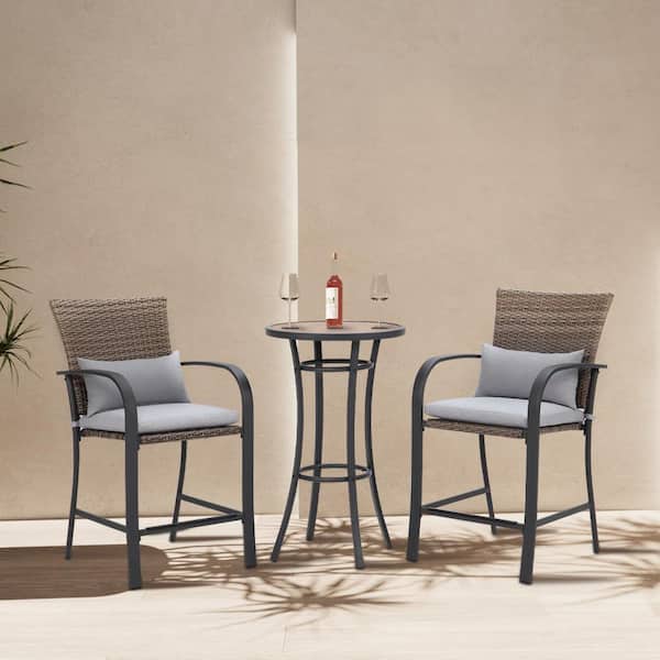 3-Piece Wood Outdoor Bar Set with Cushioned Bar Stools and Table Patio Conversation Set for Patio, Garden, Backyard