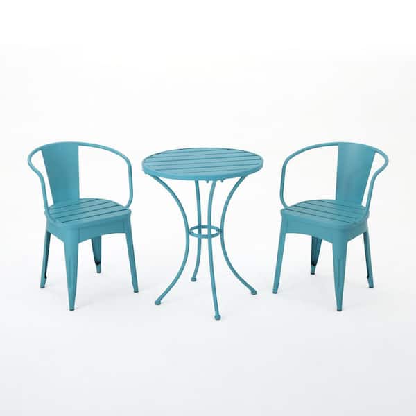 3-Pieces Blue Metal Outdoor Bistro Set, with Patio Bistro Round Table, for Backyard, Garden