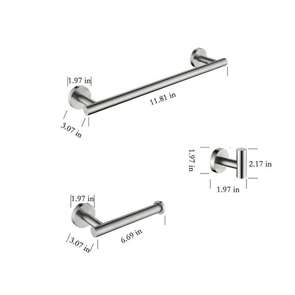 3-Pieces Brushed Nickel Bathroom Hardware Set Stainless Steel Wall Mounted Bathroom Accessories Kit