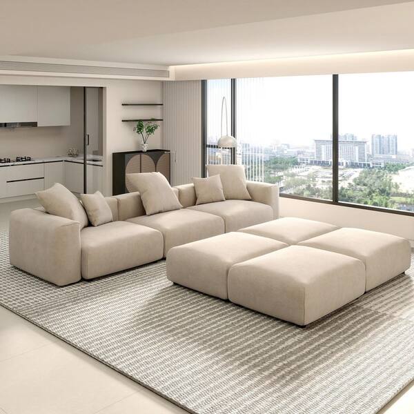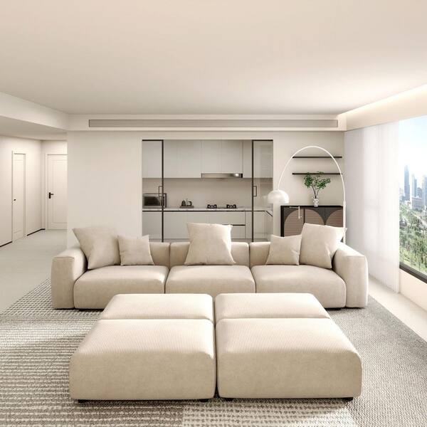 3 Pieces Modern Wide Square Shape Chenille Top Sofa Couch Living Room Set (1 Seat+2 Seats+3 Seats), Beige