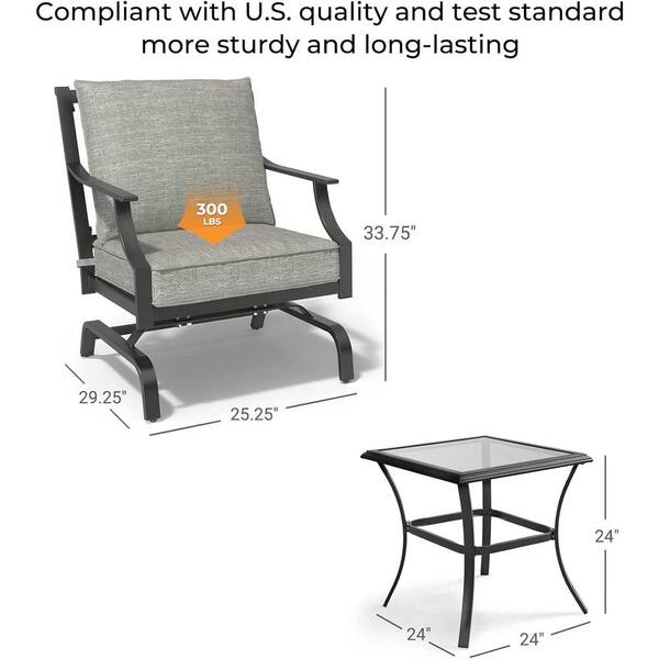 • Glider Rocking Chair with Gray Cushions Square Coffee Table