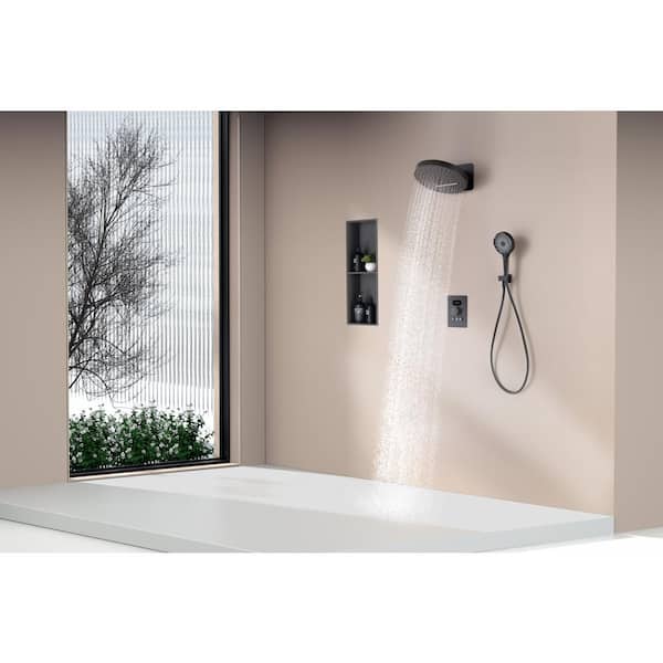 3-Spray 4.76 GPM 12.6 in. Wall Mount Fixed and Handheld Dual Shower Head with Thermostatic Shower Valve in Matte Black