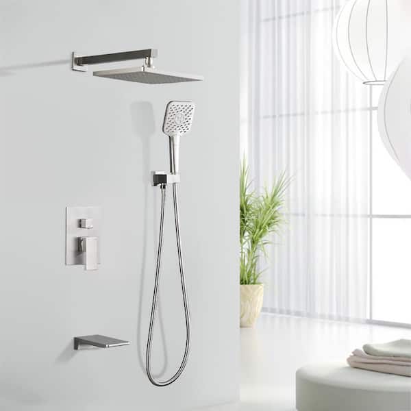 3-Spray Pattern 2.5 GPM 10 in. Shower Head Wall Mount with and Valve Fixed Shower Head Shower Faucet in Brushed Nickel