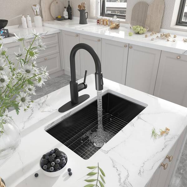 3-Spray Single Handle 1.8 GPM Pull Down Sprayer Kitchen Faucet in Matte Black with Deckplate