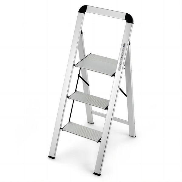 3-Step 8 ft. Reach Folding Aluminum Step Stool 330 lbs. Load Capacity