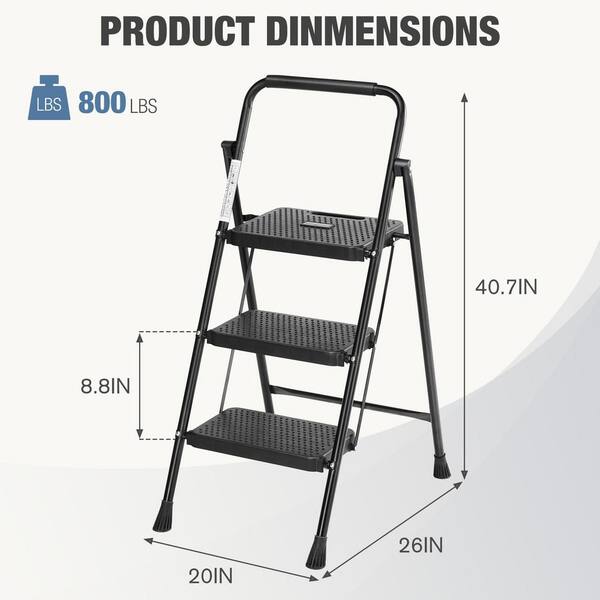 3-Step Steel Step Stool, Folding Portable Step Ladder 800 lbs. Load Capacity (8 ft. Reach Height)