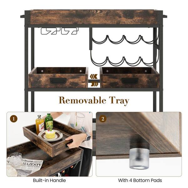 3-Tier 8 Bottle Brown Freestanding Wine Rack with Storage Shelves