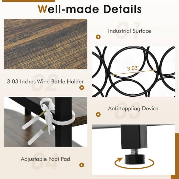 3-Tier Brown Wine Rack Table 18 Bottle Freestanding Wine Rack with Glass Holder and Storage Shelves