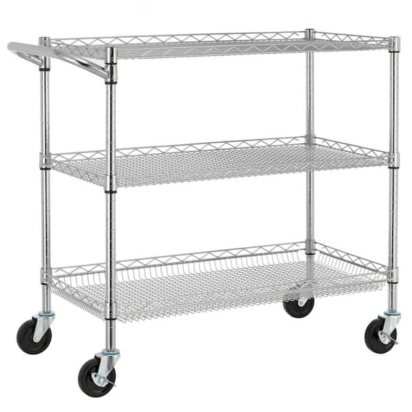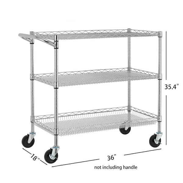 3-Tier Heavy Duty Commercial Grade Utility Cart Metal Cart Shelf Size 18 D x 36 W in. Outdoor Tables Serving Bars Chrome