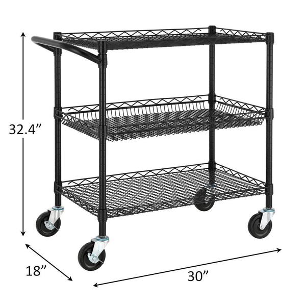 3 Tier Heavy Duty Commercial Grade Utility Cart, Wire Rolling Cart with Handle Bar Outdoor Tables Serving Bars Black