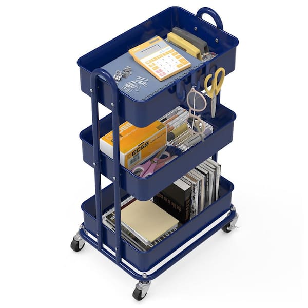 3-Tier Metal -Wheeled Utility Cart in Navy