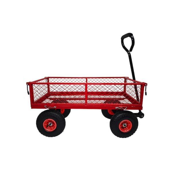 3 cu. ft. Solid Wheels Tools Cart, Wagon Cart, Metal Garden Cart Trucks in Red