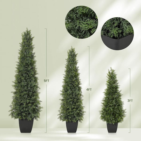 3 ft. 36 in. Tall Faux Cedar Trees, Set of 2 Artificial Topiary Tree in pot, Potted Fake Cypress Plant for Porch Decor