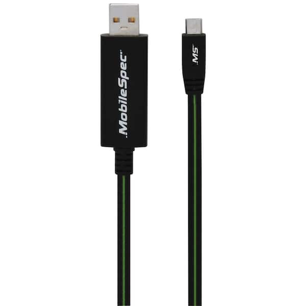 3 ft. Micro to USB Charge and Sync Light-Up Cable in Black/Green