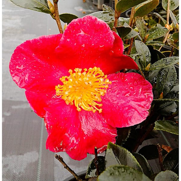 3 gal. Camellia Sasanqua Yuletide with Cherry Red Blooms