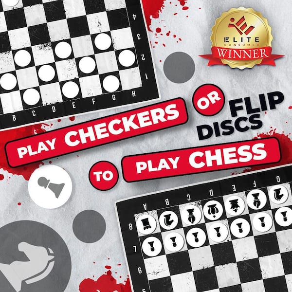 3-in-1 Giant Checkers, Chess, & Chess Tac Toe Game With Mat (4ft x 4ft) - Machine-Washable Canvas & 5" Big Foam Discs