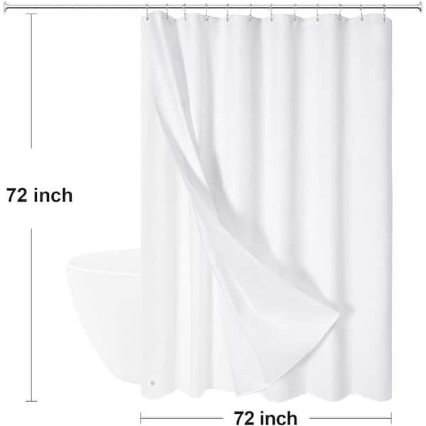 3 in 1 Shower Curtain Set 72 in. x 72 in. White Waffle Fabric and PEVA Liner with 12-Stainless Steel Hooks