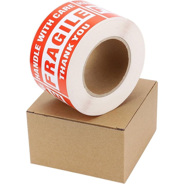 3 in. x 5 in. Fragile Stickers Roll 500 Labels Handle With Care Shipping Labels Bright Red Easy Peel
