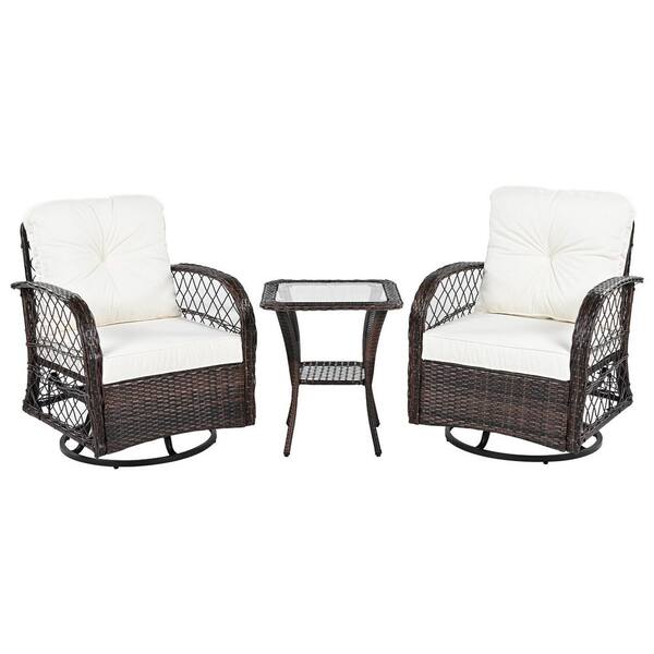 3-piece Outdoor ChairandTable Chat Set with with Beige Cushion and a Square Table for Garden, Patio, or Balcony, Brown