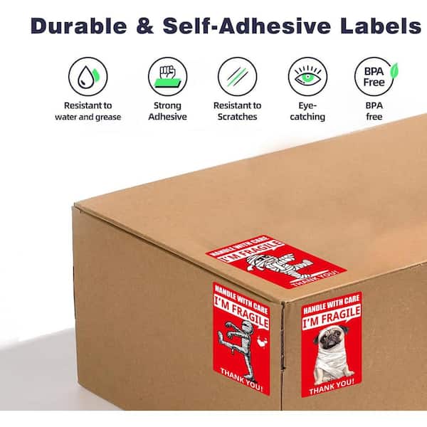 3 x 2 in. Premium Vinyl Fragile Stickers Roll Mummy Dog Design for Shipping Moving Glass Permanent Adhesive