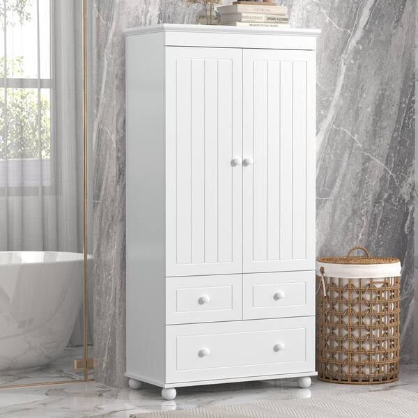 30.6 in. W x 15.8 in. D x 62.7 in. H White Linen Cabinet with Adjustable Shelf and 3 Drawers for Bathroom, Office
