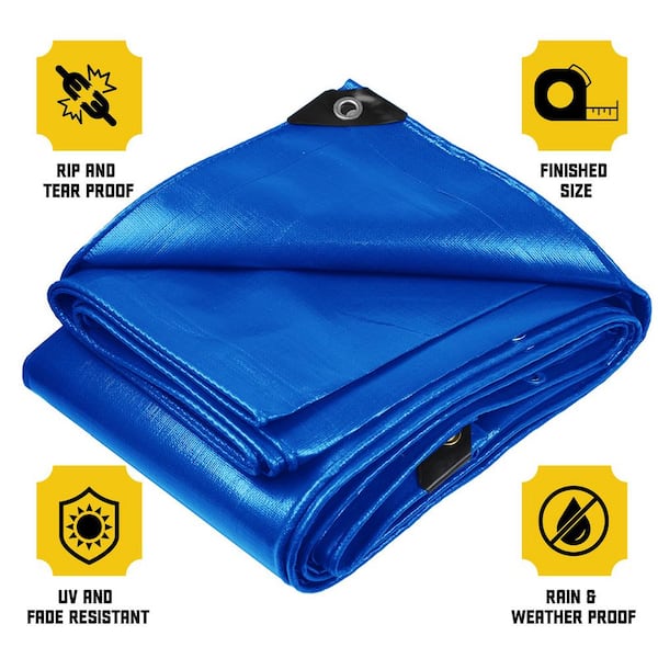 30 ft. x 40 ft. Blue 5 Mil Heavy Duty Polyethylene Tarp, Waterproof, UV Resistant, Rip and Tear Proof