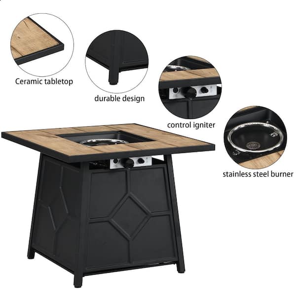30 in. 40000 BTU Gray Square Outdoor Gas Fire Pit