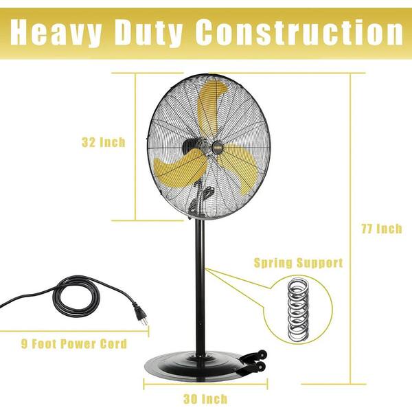 30 in. 8300 CFM Heavy-Duty High Velocity Pedestal Oscillating Fan in Yellow with Powerful 1/3 HP Motor, UL Listed