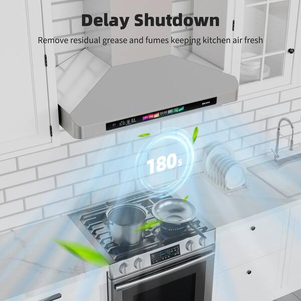 30 in. 900CFM Range Hood in Sliver Stainless Steel Wall Mount with 4-Speed Exhaust Fan LED Adjustable Lights Memory Mode