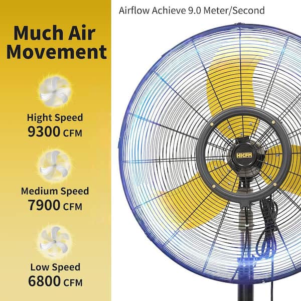 30 in. 9300 CFM Misting Outdoor Oscillating Pedestal Fan with GFCI Plug, High Velocity Weatherproof Fan in Yellow