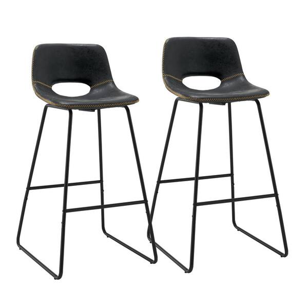 30 in. Black Metal Frame Faux Leather Counter Bar Stools (Set of 2)
