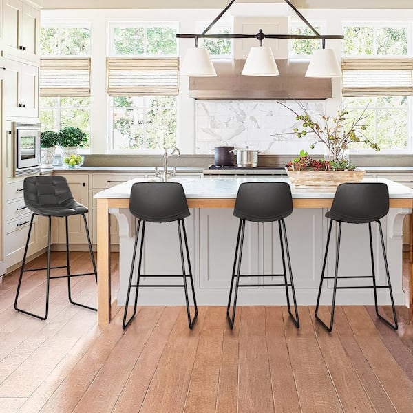 30 in. Black Mid Century Modern Faux Leather Low Back Metal Frame Bar Stools (Set of 4)