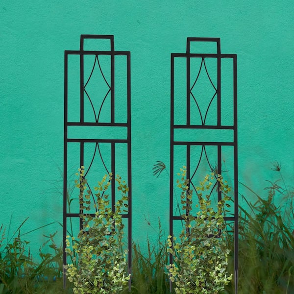 30 in. Blacks Metal Chic Diamonds Design Garden Climbing Plants Trellis (2-Piece)