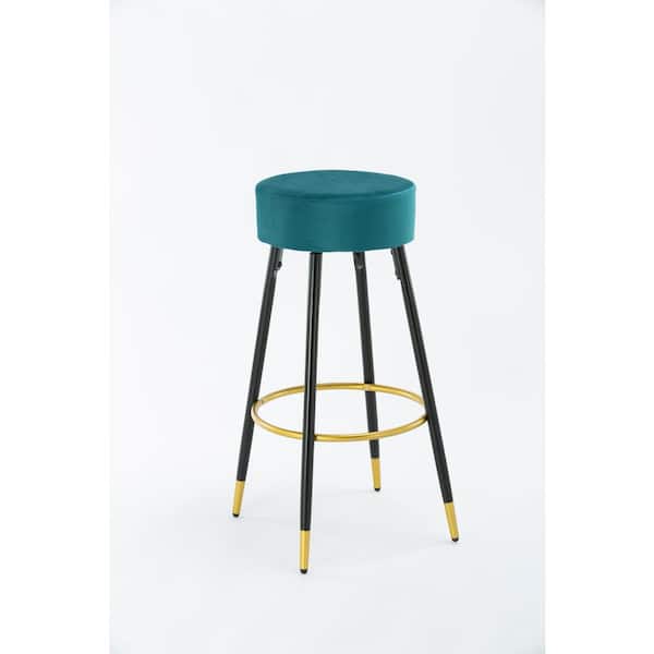 30 in. Emerald Metal Frame Counter Height Bar Stools, Velvet Kitchen Stool Upholstered Dining Chair Stool (Set of 2)