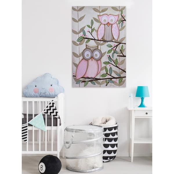 30 in. H x 20 in. W "2 Pink Owls" by Reesa Qualia Printed Canvas Wall Art