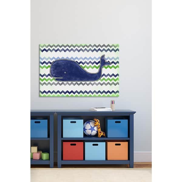 30 in. H x 45 in. W "Navy Whale" by Reesa Qualia Printed Canvas Wall Art