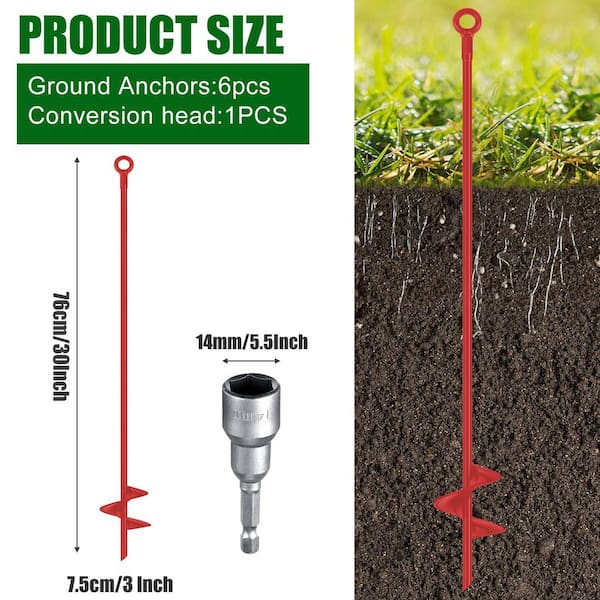 30 in. Heavy Duty Ground Anchor Spiral Blade Earth Anchor Kit Metal Anchor Hook Beach Sand Stakes Camping(Red, 6 Piece)