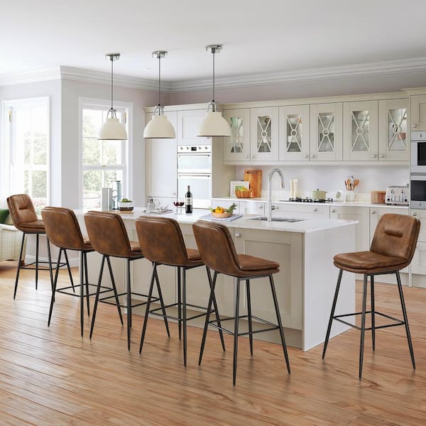30 in. Metal Frame Dark Brown Faux Leather Upholstered Bar Chairs Armless Bar Stools with Back and Footrest Set of 2