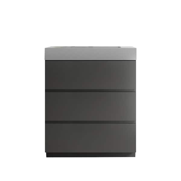 30 in. Modern Bathroom Vanity Cabinet, 3-Drawers Cabinets with 1 White Sink Basin, Resin Top, Gray