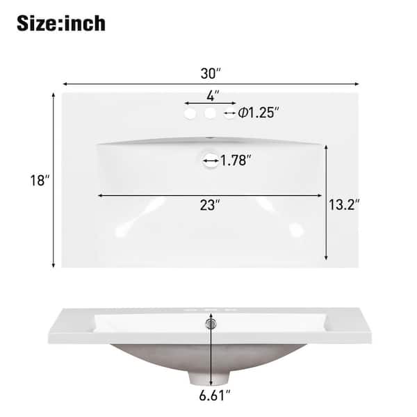 30 in. Modern Undermount Rectangular Bathroom Sink with 3 Faucet Holes in White Resin
