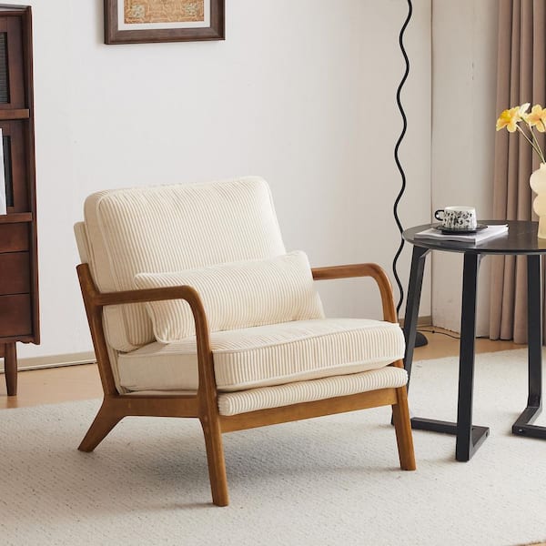 30 in. Off-Cream Upholstered Corduroy Arm Chair