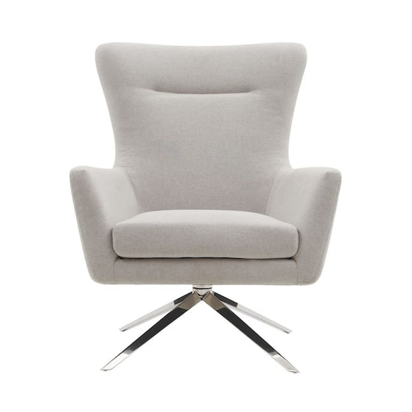 30 in. Off-White Linen Arm Chair with Aluminum Alloy Base