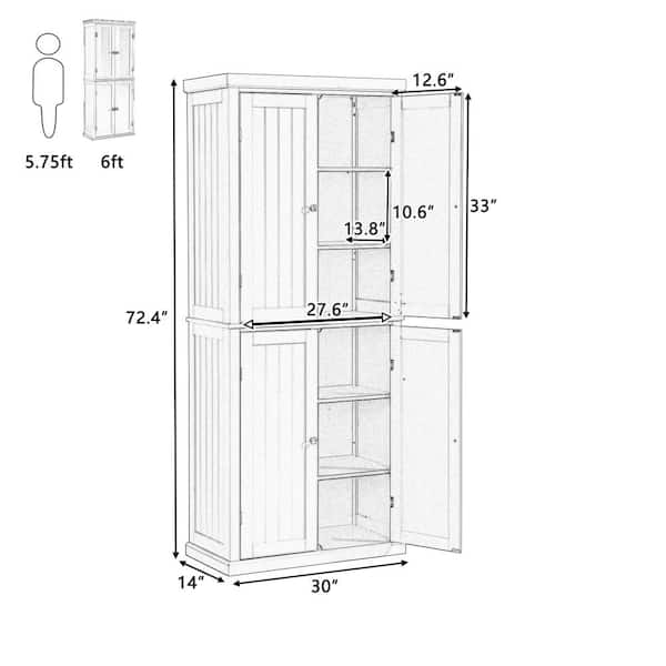 30 in. W x 14 in. D x 72.4 in. H Bathroom White Linen Cabinet