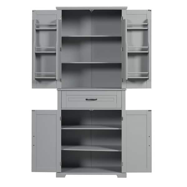 30 in. W x 16 in. D x 72 in. H Gray MDF Freestanding Linen Cabinet with Doors and Drawer, Adjustable Shelf