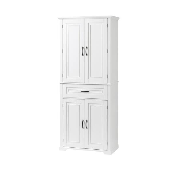 30 in. W x 16 in. D x 72 in. H White Linen Cabinet with Adjustable Shelf and Drawer