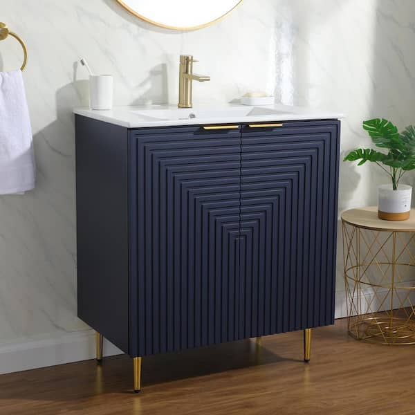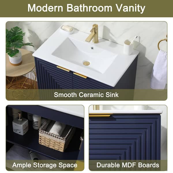 30 in. W x 17.91 in. D x 23.62 in. H Wall Hung Bathroom Vanity in Blue with White Ceramic Top with White Sink