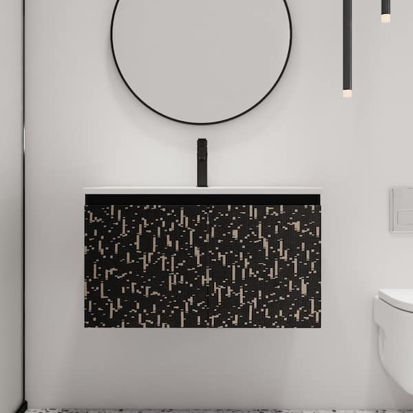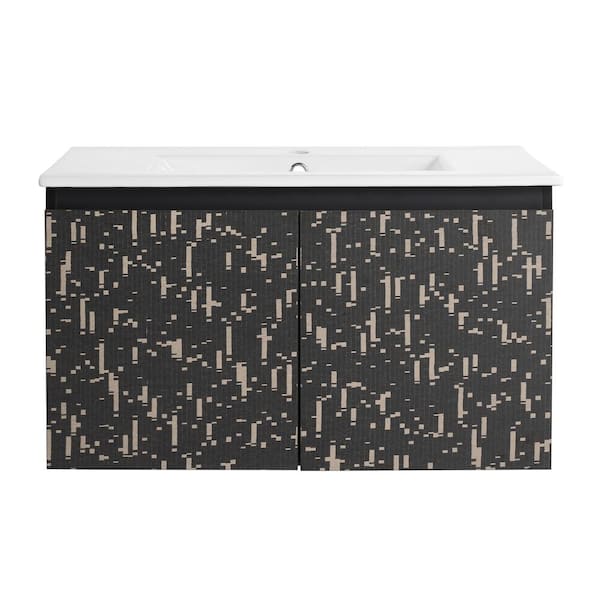 30 in. W x 18.3 in. D x 17.3 in. H Wall Mounted Bath Vanity in Black with White Ceramic Vanity Top