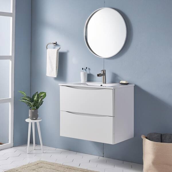 30 in. W x 18 in. D x 24 in. H Floating Bathroom Vanity in White with White Ceramic Sink