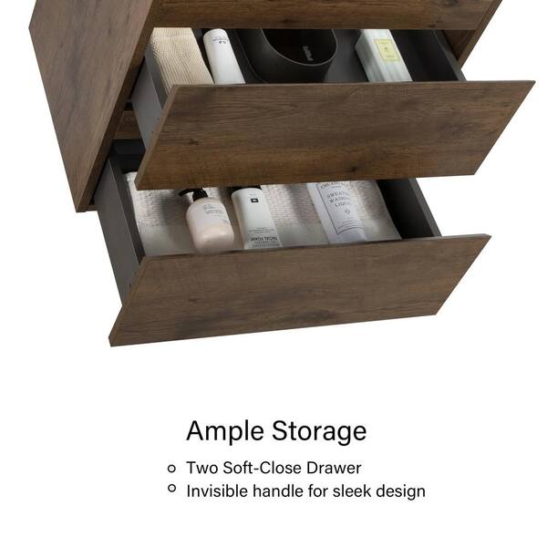 30 in. W x 18 in. D x 25 in. H Wall Mounted Bath Vanity in Walnut with Black Solid Surface Top