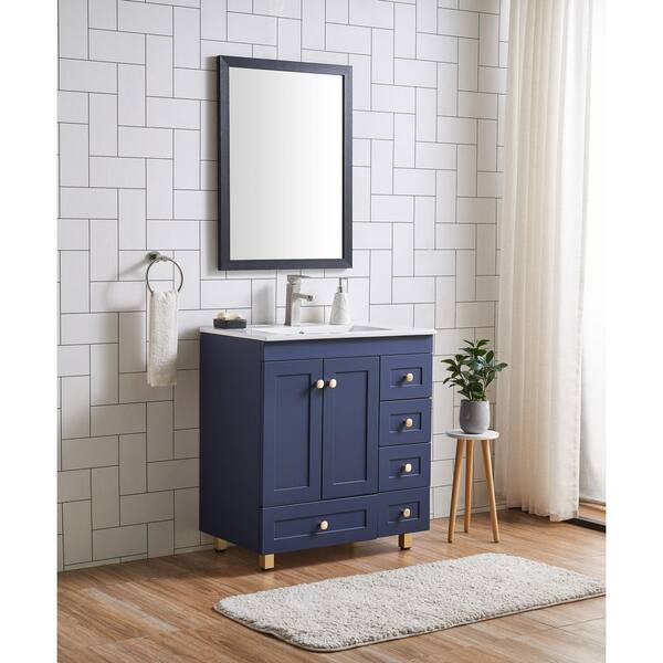 30 in. W x 18 in. D x 32 in. H Bathroom Vanity in Blue with White Ceramic Sink Top